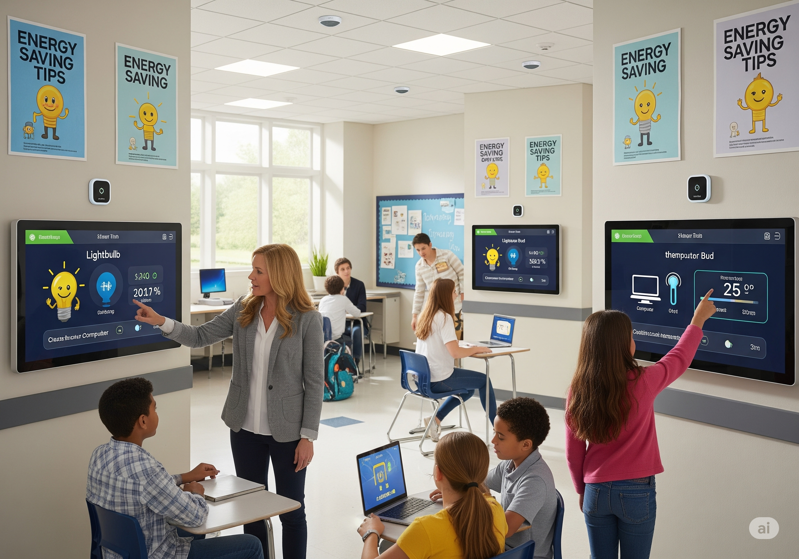 ระบบอัจฉริยะที่ออกแบบมาเพื่อจัดการปัญหาการสิ้นเปลืองพลังงานภายในโรงเรียน โดยเฉพาะอย่างยิ่งในกรณีที่มีการลืมปิดอุปกรณ์ไฟฟ้าต่างๆ เช่น ไฟส่องสว่าง หรือเครื่องปรับอากาศ หลังจากที่ไม่มีผู้ใช้งานในพื้นที่แล้ว ระบบนี้มุ่งมั่นที่จะช่วยลดค่าใช้จ่ายด้านพลังงานของโรงเรียน และส่งเสริมจิตสำนึกด้านการอนุรักษ์พลังงานให้กับนักเรียนและบุคลากร
